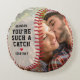Un fan de baseball couple un coussin avec le nom de votre petit ami, le dicton "vous êtes un tel piège", et votre nom, plus une photo de vous deux.