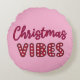Jolie, élégante, typographie rétro Noël jetez l'oreiller avec le lettrage "noël vibes" et le texte personnalisable à l'arrière. Ce coussin est un ajout fantastique pour la saison festive et peut aussi être un grand objet à offrir à quelqu'un ce noël!