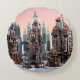Rendu numérique en 3D d'une ville futuriste de science-fiction sur un arrière - plan de ciel rose