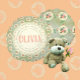 Beaux roses fleuris de style vintage sur des napperons, avec un arrière - plan damassé vert fumée. Personnalisez-le avec un nom ou un message. Note : dentelle et napperons font partie de l'oeuvre d'origine, pas de la dentelle réelle. Idéal pour le chic shabby, le français country, la ferme et tant d'autres décors doux et romantiques.