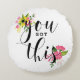 Coussin ronde mignonne et girly motivationnelle avec calligraphie moderne et des accents floraux colorés. Ce design est disponible en variété de couleurs et de produits.