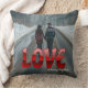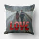Ce magnifique coussin présente le mot "Amour" dans un élégant script de calligraphie rouge tourbillonnant, avec vos photos préférées. Vous pouvez ajouter votre photo ou votre texte, ou le nom de tout proche ou conjoint. Fait aussi le gardien parfait pour un couple.
