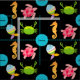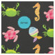 Les enfants de tissu aimeront, comportent un arrière - plan noir avec des créatures de mer comprenant une tortue de mer rose, des poissons rayés, un hippocampe orange, et des cercles de crabe aussi bien que bleus enragés que vous pouvez customiser avec un nom.