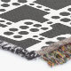 Un motif répétitif abstrait détaillé, composé d'un réseau de formes rectangulaires interconnectées, chacune décorée de taches ou de trous aléatoires, qui rappellent peut-être une sorte de ville étrange avec des bâtiments qui ressemblent à du fromage Emmental. La couleur arrière - plan de cette conception peut également être modifiée, ce qui la rend disponible dans de nombreuses combinaisons différentes.
