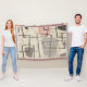 Cette couverture abstraite moderne de jet de la moitié du siècle comporte une reproduction d'un tissu vintage des années 1950. L'arrière - plan est ecru avec des lignes de noir et d'or. Le tissu comporte également des formes grises et roses d'art moderne. C'est un souffle du passé ! C'est la conception parfaite pour n'importe qui qui aime des articles avec un rétro sentir.