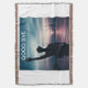 Cette image représente la silhouette d'un homme debout dans l'eau peu profonde avec son bras levé vers le ciel. L'arrière - plan présente un coucher de soleil serein, avec à l'horizon des teintes rose, orange et bleu profond. L'eau calme reflète les couleurs du ciel, créant une atmosphère tranquille et onirique.