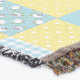 Une Blanche à Throw pour customiser, avec un design Faux Patchwork de motifs de moutons et de motifs en Blues et Jaunes, en équipe avec la coordination Check Ginghams et Pots Polkas. Sur une illustration géante de Judy Adamson, vous pouvez customiser l'échelle du motif de moutons.