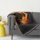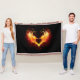 Angel fire heart with flaming wings on black background.