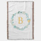 Couverture Aqua et Yellow Monogramme Floral Wreath