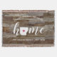 Montrez votre fierté pour votre état d'origine avec cette couverture jetée en planches de faux bois rustique mignonne avec le mot "home" en lettrage calligraphique blanc et une carte en silhouette de l'état de l'Arkansas à la place de la lettre "O". Une illustration de cœur rose à l'intérieur de la carte de l'état complète le design ; vous pouvez changer la position du cœur pour votre ville d'origine en ouvrant l'outil de conception et en faisant glisser la forme du cœur vers votre endroit préféré. Personnalisez avec votre ville d'origine, le nom de votre famille et l'année de fondation pour créer un cadeau de pendaison de crémaillère parfait et mémorable ou un ajout à votre nouvelle maison.
