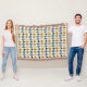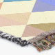 Arlequin moderne du milieu du siècle motif de triangles empilés formant des formes diamantées - teintes de bleu denim doux, bouffées et bronzés sur un arrière - plan crème / blanc cassé