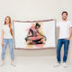 Dessin d'une ballerine agenouillée lors de son récital. Image créée avec des nuages de couleur jaune et rose en arrière-plan, se fondant dans la figure de la ballerine.