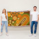 Un design amusant avec des fleurs funky et un arrière - plan rétro rayé. Un design à revers avec des teintes vert avocat, marron et orange.