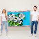 Pièce de fleurs de poulets et de bois de chien à enveloppe noire avec contour noir sur arrière - plan bleu clair