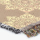 Écrasez-vous une nuit fraîche sous cette jolie couverture frangée. Le Blanket a un médaillon lacey en jaune et abricot. L'arrière - plan est brun de tabac. Ce design présente un champ bronzé avec trois médaillons plus gros encadrés par des médaillons plus petits. Utilisez-le dans le salon, la chambre ou la cabine. Le design provient du fabricant de tuiles de l'Oregon Fay Jones Day.