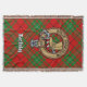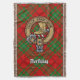 Blason du clan MacAulay entouré d'une sangle et d'une boucle sur fond de tartan. Texte personnalisé.
