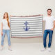 Une grande ancre vintage en bleu apparaît sur un arrière - plan rayé gris et blanc pour faire ce design nautique amusant. Les articles correspondants sont disponibles dans mon magasin Zazzle.