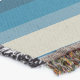 Des rayures bleues, blanches, vertes et grises jettent la couverture.