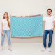 Blue and white diamond-patterned blanket shown horizontally and vertically with beige fringes. The design conveys a cozy, homey feel.