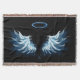 Light, artistique, blue angel wings on a black background. Angel wings.