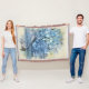 Le joli Mariage de fleurs Blue Hydrangea Throw fait un cadeau de conservation durable lorsqu'il est personnalisé avec les noms de la date de la mariée, du marié et de la cérémonie de mariage. Cette belle couverture de mariage botanique personnalisée présente une photo florale numériquement peinte d'une fleur d'hydrangée bleue et d'un arrière - plan de couleur crème blanche cassée.