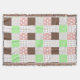 Cute couverture de sauce blanche avec pois roses, mauves, marron, bordeaux et sauge et motifs rayés. Des couleurs chaudes et terreuses.