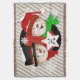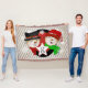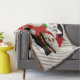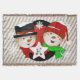 Un bonhomme de neige dans un casquette supérieur, un bonhomme de neige dans une haine rouge d'hiver et l'écharpe rayée, un arrière - plan des rayures diagonales grises avec une polka rouge ont pointillé le cercle sur le noir avec une étoile blanche que vous pouvez facilement customiser avec votre initiale de monogramme ! Cette jolie couverture de jet de Noël de bonhomme de neige sera une année prisée d'article après année !