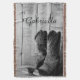 Customisez la charmante Rustic Boots Country Western Jetez avec le nom de votre fille cow-girl fille, petite amie, tante ou maman pour créer un cadeau de conservation personnel. Cette couverture rustique chic à thème occidental dispose d'une photo en noir et blanc numériquement rehaussée d'une paire de bottes de cowboy en cuir avec un arrière - plan patiné en bois de grange.