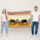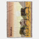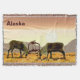 Deux taureaux de caribou luttent pendant l'automne rut dans l'extrême nord tandis que le soleil se couche dans l'arrière - plan. Le texte personnalisable "Alaska" apparaît également.