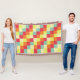Un motif composé de carrés de cinq couleurs différentes, disposés en tuiles 4x4. Cependant, les tuiles 4x4 sur la droite sont inversées et inversées, ce qui crée un design général plus intéressant. Cette conception est créée à partir d'un graphique vectoriel de taille réelle spécifiquement pour ce type de couverture. Les carrés de couleur aux bords sont donc complètement étendus dans la zone de fond de saignement, ce qui garantit qu'il ne peut y avoir aucun bord motif indésirable dans le produit final.