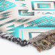 Cette conception comprend un motif géométrique avec un motif en losange extensible avec des bords flous et plumés rayonnant vers l'extérieur. L'effet global combine symétrie, énergie et profondeur — un équilibre entre l'atmosphère tribale et la géométrie moderne en turquoise, gris et crème.