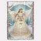 A serene celestial angel stands beneath a snowy archway of evergreens and winter florals, gently cradling a glowing lantern that spills soft golden light across her gown. Behind her, a dusky blue forest of snow-covered trees shimmers with falling flakes and tiny sparks of light, creating a peaceful, storybook atmosphere. Delicate lace details, flowing sleeves, and a halo-like crown of foliage give this winter angel illustration an ethereal, cottagecore charm that feels both nostalgic and on-trend. Soft blue and warm cream tones blend into a dreamy palette that suits spiritual holiday imagery, quiet reflection, and year-round messages of hope. This design is ideal anywhere a touch of calm, light, and heavenly beauty is desired. AI generated artwork.