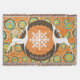 Belle couverture jetée de Noël avec un arrière - plan d'orange vintage avec des orbes de flocon coloré, un anneau de brun foncé solide, et un centre orange avec de minuscules pois blancs et un grand centre de flocon de neige. Deux cerfs en silhouette blanche et de jolis ornements d'arbres ornent ce jet de vacances fantaisiste et il y a un espace que vous pouvez facilement personnaliser avec votre nom de famille.
