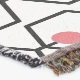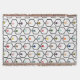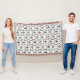 Cette couverture de lancer a un design moderne du milieu du siècle en hexagones enchaînés avec un cercle sur une cheville à l'intérieur de chacun.