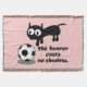 Un chat noir et blanc se faufile sur un ballon de football. Le texte humoristique dit "Le chasseur ne jette pas d'ombre". Le ballon jette une ombre mais le chat ne l'est pas." Le chat est noir et a de grands yeux blancs, il n'a pas d'autres traits faciaux ni chuchotements.