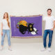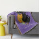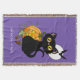 Un mignon petit chat noir avec un citrouille orange, des organes ac, une chauve-souris et une pleine lune sur fond de violet
