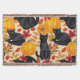 Motif peint à la main avec chats noirs, citrouilles et feuilles d'automne. Mix-media- peinture numérique et aquarelle.