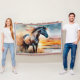 Cheval sauvage sur une dune herbacée fleurie sur la côte océanique coucher de soleil Art Ai par minx267