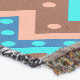 De grandes rayures de chevron, alternées avec des points, forment un design moderne du milieu du siècle dans les couleurs du sud-ouest, turquoise, corail doux et bleu cobalt, avec un arrière - plan brun rustique chaleureux