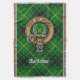 Cimier du clan MacArthur entouré d'une sangle et d'une boucle sur fond de tartan. Texte personnalisé.