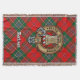 Insigne de cimier du clan MacLean entouré d'une sangle et d'une boucle sur fond de tartan. Texte personnalisé.