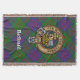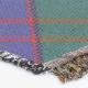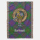 Clan MacDonald crest badge surrounded by a strap and buckle over tartan background. Custom text.
