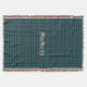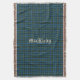 Couleur de franges personnalisées à l'extrémité jetée couverture faite avec des graphiques du clan bleu, vert et noir MacKirdy tartan plaid motif. Un texte de style ancien couleur crème peut être personnalisé pour lire ce que vous voulez. Belle idée cadeau pour n'importe qui.