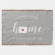 Montrez votre fierté pour votre état natal avec cette couverture grise en laine douillette qui présente le mot "home" en lettrage calligraphique blanc avec une carte en silhouette de l'état du Colorado à la place de la lettre "O". Une illustration de cœur rouge à l'intérieur de la carte de l'état complète le design ; vous pouvez changer la position du cœur pour votre ville natale en ouvrant l'outil de conception et en faisant glisser la forme de cœur vers votre endroit préféré. Personnalisez avec votre ville natale, le nom de votre famille et l'année de création pour créer un cadeau de pendaison de crémaillère parfait et mémorable ou un ajout à votre nouvelle maison.