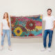 Bring a burst of creative energy into any living space with this striking botanical art piece. The design features a bold interplay of sunflowers and whimsical swirls in a rich, saturated color palette. Perfect for adding a sophisticated yet playful touch to your home decor or gifting to someone who appreciates unique hand-drawn illustrations.