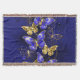 Composition des luxueux papillons saphir et bijoux en or sur arrière - plan bleu texturé.