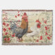 Conception vintage utilisant coq et poule, récépissé, et plantes feuillus avec fleurs rouges dans un collage de découpage.