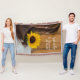 Personnalisez le charmant Mariage de Tournesol Pays Jetez avec les noms de la date de la mariée et du marié et de cérémonie de mariage pour créer un cadeau unique durable de conservation pour le couple qui a planifié une ferme rurale ou des nuptiaux de style ranch. Cette couverture rustique chic et mariage décontractée et classe présente une photo florale d'une paire de bottes de cowboy en cuir marron et une fleur de tournesol jaune avec un arrière - plan en bois de grange marron.