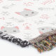 Motif mignon avec un chat gris, des empreintes de pattes roses, des os de poisson rose et gris.