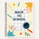 Conception amusante et colorée pour la rentrée scolaire avec des formes abstraites audacieuses, une illustration de planète et un fond de cahier à grille. Parfait pour les étudiants et les enseignants. Idéal pour les fournitures scolaires, la papeterie et les thèmes éducatifs.
